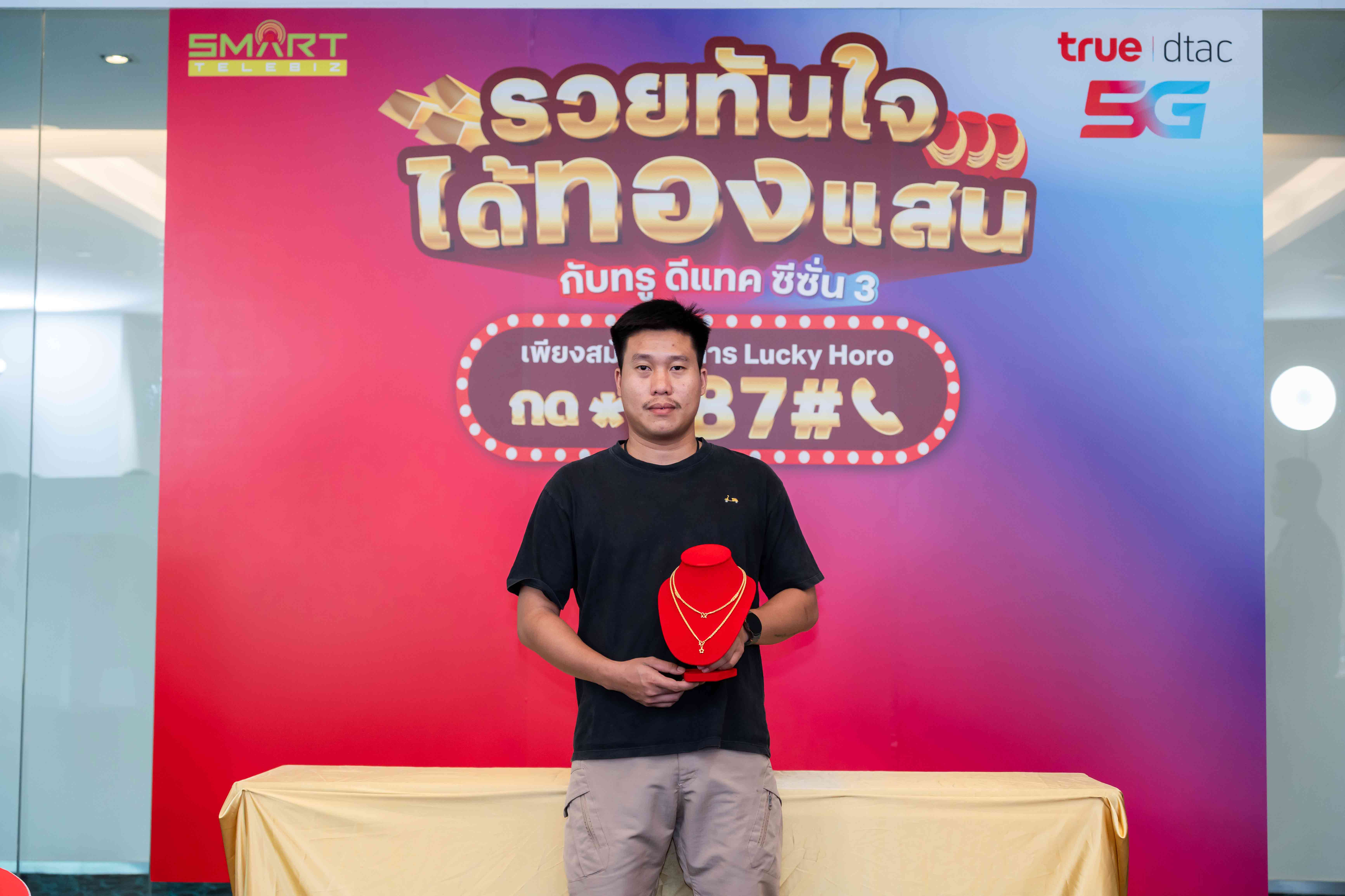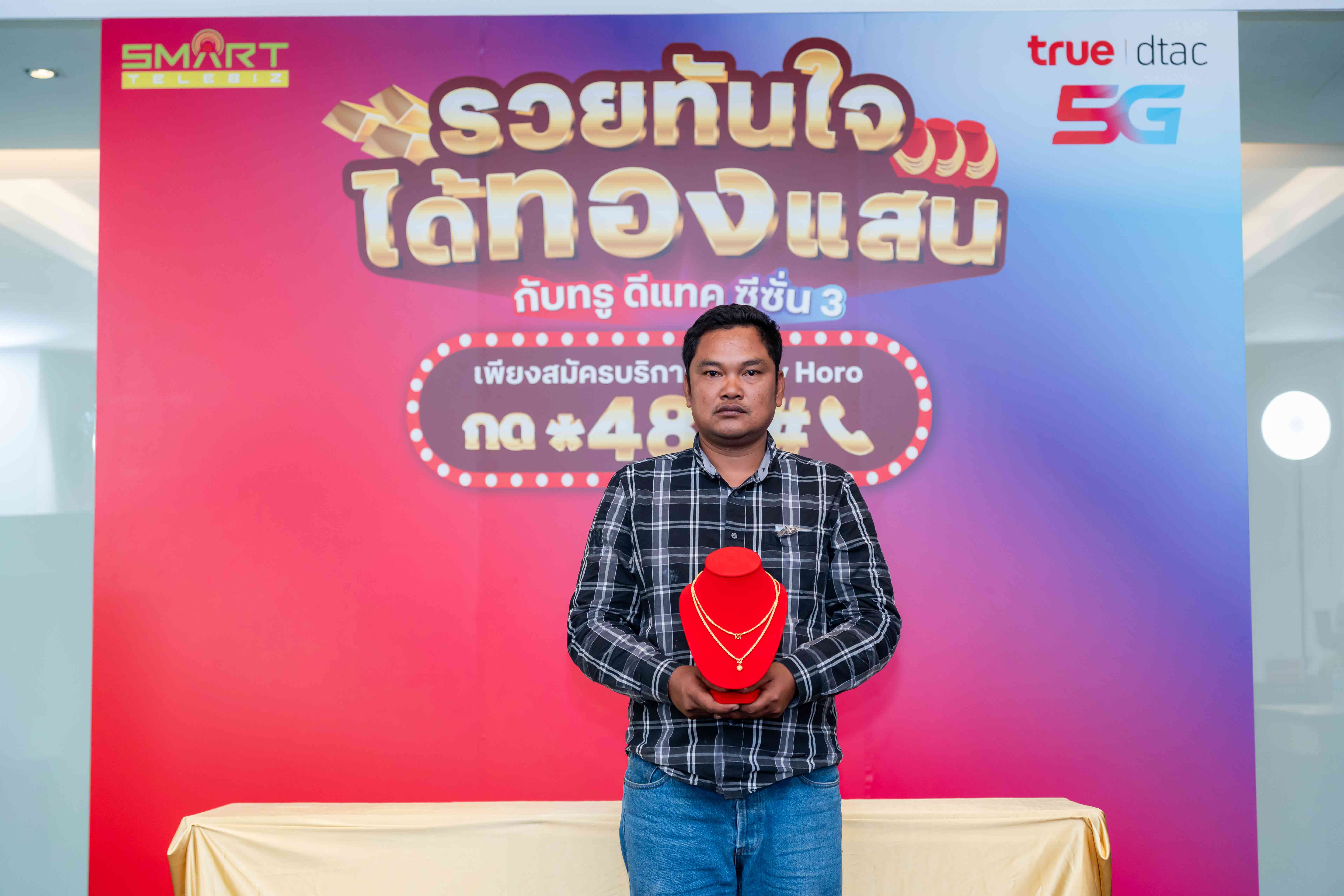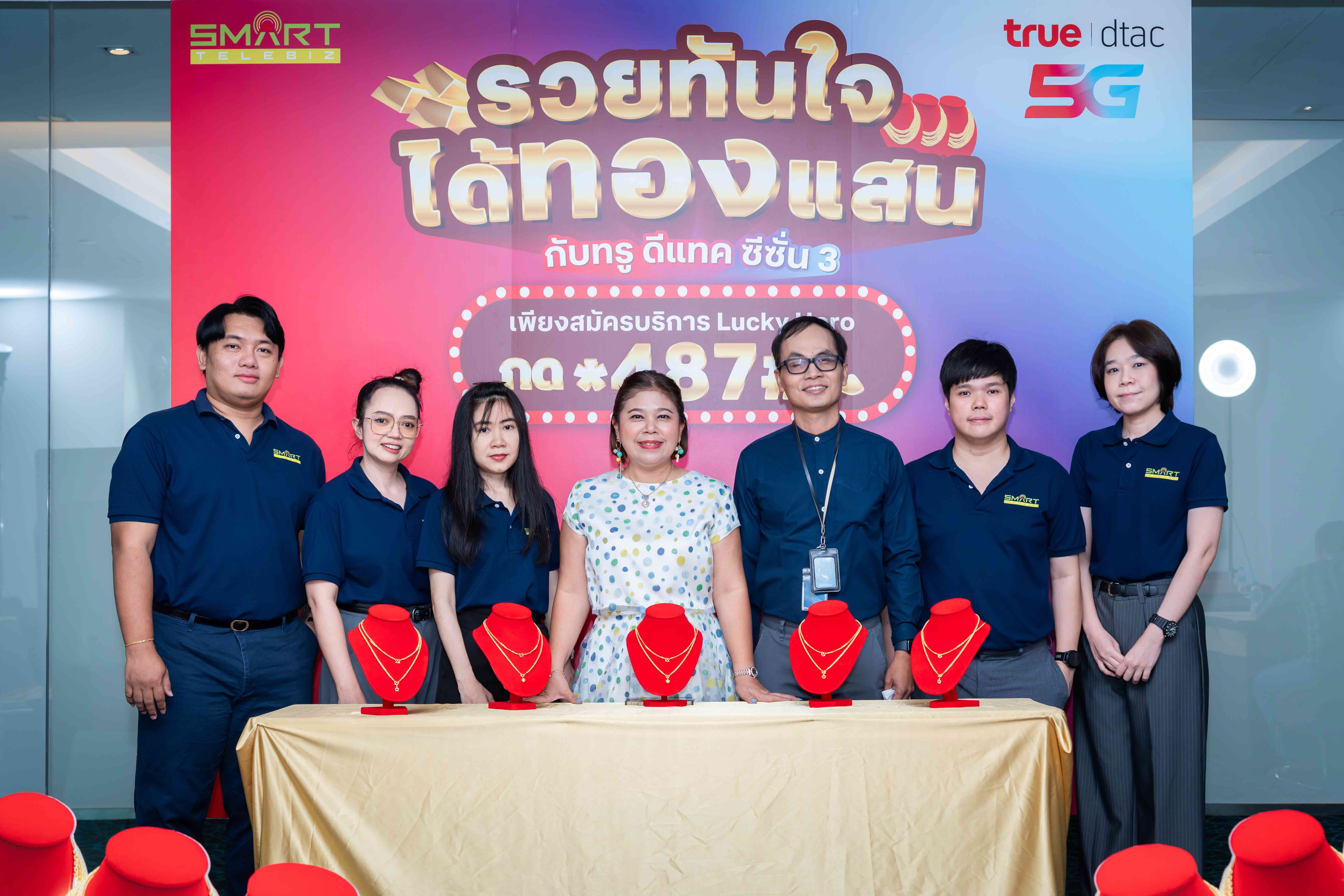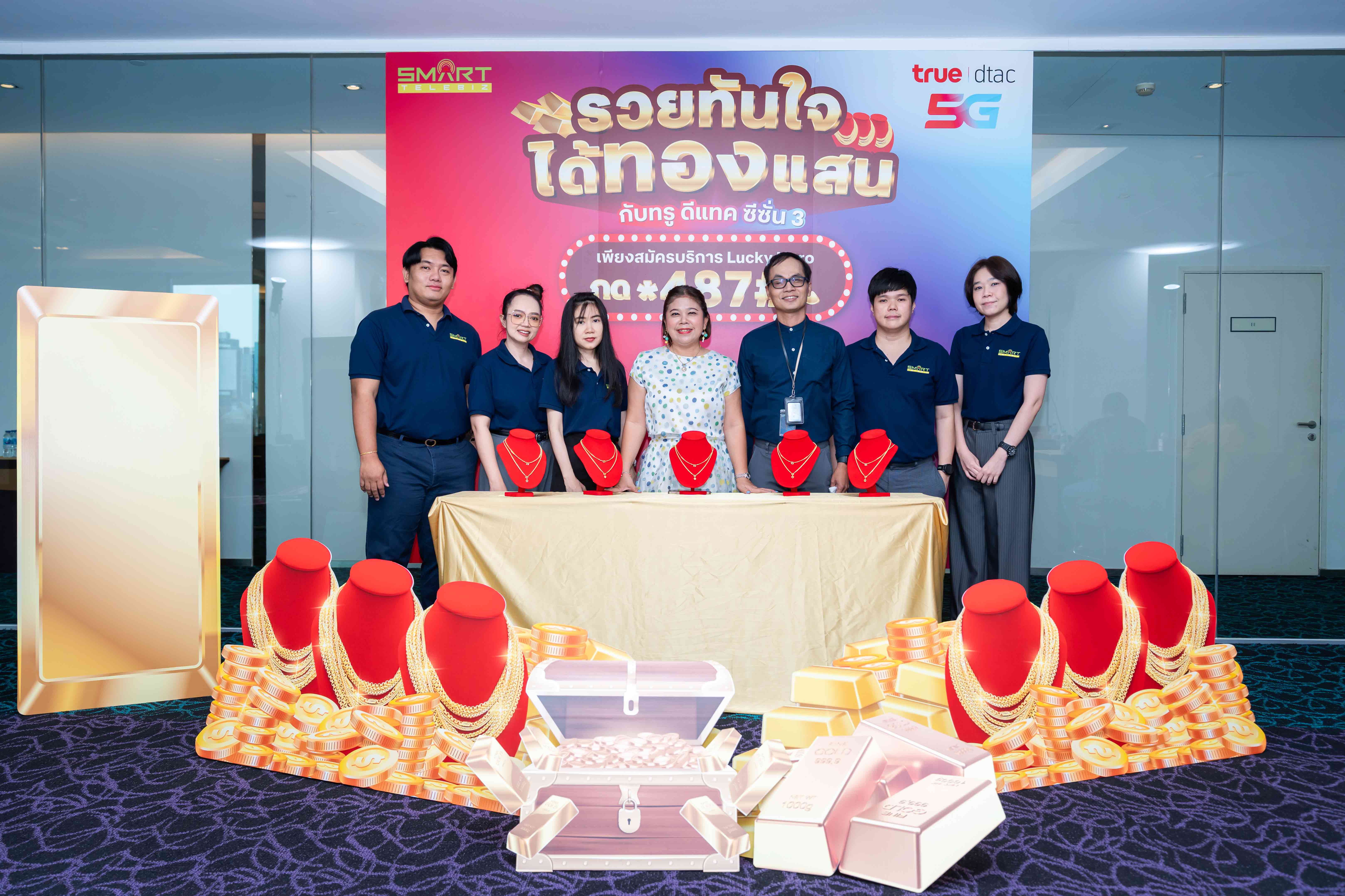เมื่อวันที่ 18 มีนาคม 2569 ที่ผ่านมา คุณภูริโชติ วงศ์โกมลเชษฐ์ หัวหน้าฝ่ายบริการดิจิทัล พร้อมด้วยคุณสุนิษา อนันทนุพงศ์ หัวหน้ากลุ่มงานโมบายล์คอนเทนต์ บริษัท ทรู คอร์ปอเรชั่น จำกัด (มหาชน) และคุณวัลลิยา ซุ้ยวงค์ษา กรรมการผู้จัดการ บริษัท สมาร์ท เทเลบิซ จำกัด ร่วมกันมอบทองคำมูลค่ากว่า 100,000 บาท จำนวน 5 รางวัล ให้กับผู้โชคดี กิจกรรม “รวยทันใจได้ทองแสน กับทรู ดีแทค ซีซั่น 3”